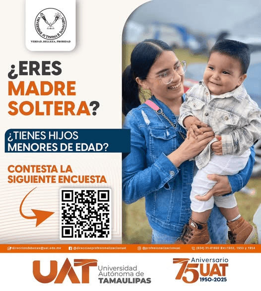 Si eres madre soltera y tienes hijos menores de edad, ¡queremos escucharte! 🙌 En la UAT, nos importa tu bienestar y estamos comprometidos con crear un ambiente académico que sea empático e incluyente para todos. Tu experiencia es invaluable y nos gustaría entender mejor tus necesidades.