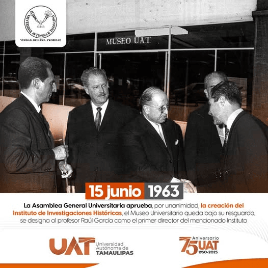 En esta fecha histórica, la Asamblea General Universitaria aprobó por unanimidad la creación del Instituto de Investigaciones Históricas UAT, que ahora resguarda el Museo Universitario.