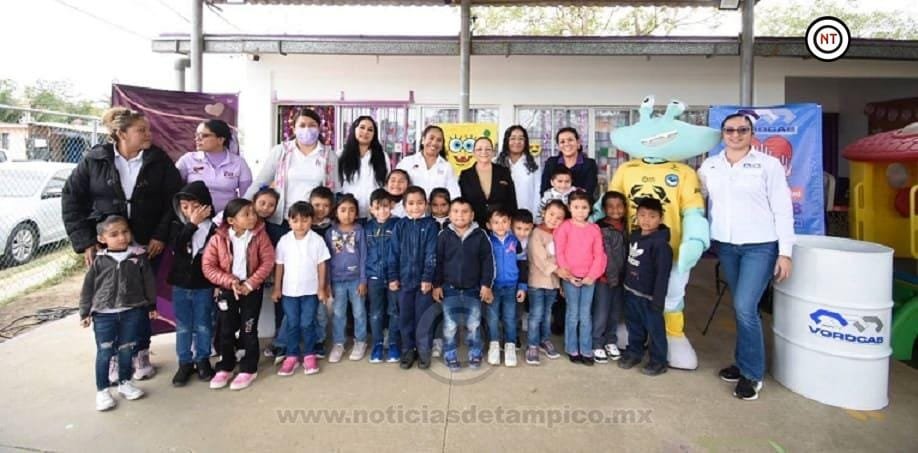 Altamira, Tamaulipas. – En las instalaciones del Centro de Atención Infantil Comunitario “Eva Ortiz de Gil”, localizado en la Colonia Diana Laura Riojas de Colosio, fue efectuada una distinguida ceremonia para agradecer a la empresa “Grupo Vordcab S.A. de C.V.” por su valiosa contribución para mantener en buen estado este espacio educativo.