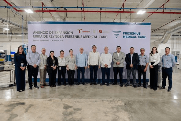Con la presencia del gobernador Américo Villarreal y el vicepresidente de Manufactura en Erika de Reynosa, Jesús González, se llevó a cabo el anuncio de una inversión de 10 millones de dólares en una nueva filial de la empresa Erika de Reynosa la planta más grande del mundo de la compañía alemana Fresenius Medical Care, que generará 600 empleos directos e indirectos; también estuvo acompañando al Gobernador, la secretaria de Economía, Ninfa Cantú Deándar