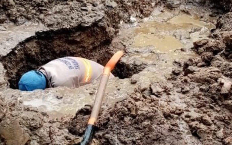 En la calle Galaxia, entre Universo y Avenida Pedrera, del referido sector, personal del organismo reemplazó un tramo de la línea que estaba dañado por el paso del tiempo y que ocasionaba el escurrimiento de agua.