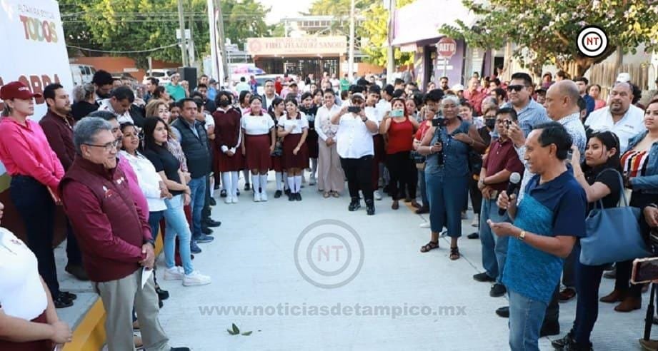 Altamira, Tamaulipas. – Una obra más fue inaugurada en la zona Miramar de Altamira, en esta ocasión en la Colonia Serapio Venegas Sector II, pues el presidente municipal, Dr. Armando Martínez Manríquez hizo la entrega oficial de la pavimentación de la calle Cinco de Febrero entre calle Madrid y Nayarit.