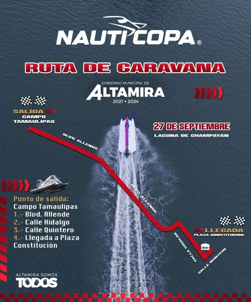 Cambio. Caravana termina en la plaza Constitución !! Ahí habrá rueda de prensa, firma de autógrafos, fotos con los pilotos y las lanchas !! No faltes !!
