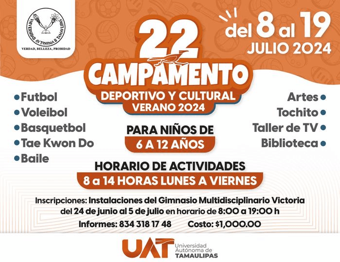 Invitamos a todas las niñas y niños de 6 a 12 años a nuestro 22º Campamento Deportivo y Cultural Verano 2024. ![]()