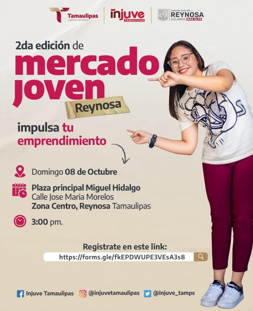 Buenos días, Reynosa. Organizamos junto al Injuve Tamaulipas la SEGUNDA EDICIÓN del MERCADO JOVEN REYNOSA. Este evento es un gran reconocimiento a los jóvenes emprendedores que tienen la visión y el deseo de crear.