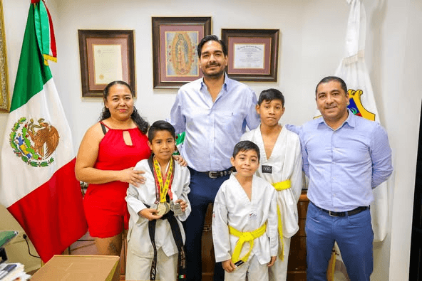 El alcalde de Reynosa recibió en su oficina a los niños Mauricio Jahaziel de la Cruz, Francisco Rodríguez, Vivían Aleyani de la Cruz y Cristian Ally de la Cruz , destacados taekwondistas reynosenses que han representado con orgullo a la ciudad. 👏🏼💪🏼