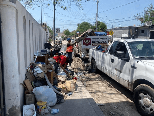 🚧 Servicios Públicos Primarios Reynosa continúa con los recorridos por todas las zonas afectadas por las inundaciones. Los trabajos de limpieza, recolección de desechos y eliminación de cacharros siguen avanzando, acercándonos cada vez más a la recuperación total de nuestra querida Reynosa.