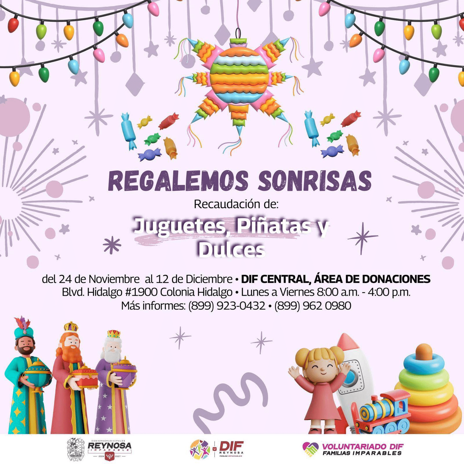 Invito a sumarse a la campaña “Regalemos Sonrisas”, para llevar alegría a las niñas y niños de Reynosa esta temporada.