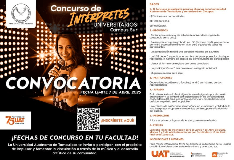 Si eres estudiante de la Universidad Autónoma de Tamaulipas y la música es tu pasión, esta es tu oportunidad de participar en el Concurso de Intérpretes ![]()