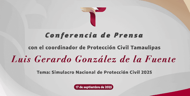 Hoy se llevó a cabo una conferencia de prensa encabezada por el coordinador de Protección Civil Tamaulipas, Luis Gerardo González de la Fuente, en la que se informó sobre los resultados y la importancia del Simulacro Nacional de Protección Civil 2025.