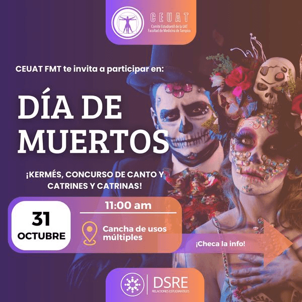 La Facultad de Medicina de Tampico a través de su Comité Estudiantil, te invita a celebrar el Día de Muertos ✨💜🌼🧡