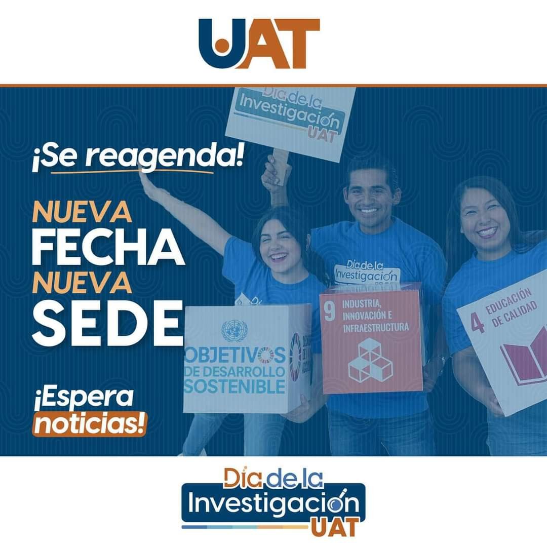El Día de la Investigación UAT 2023 será en una nueva fecha y nueva sede. 🙌🔍 ¡Mantente atento a nuestras redes sociales para que no te pierdas ninguna actualización!