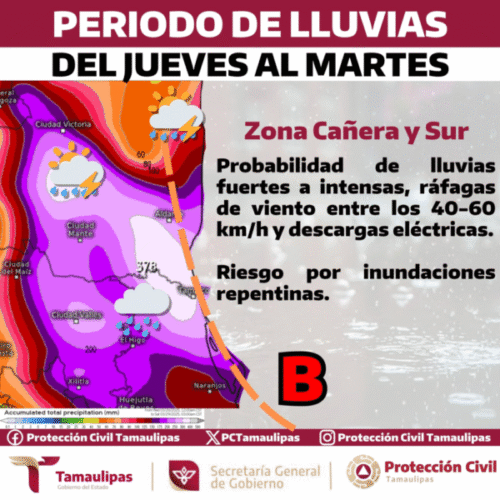 El periodo de lluvias se consolidará este jueves y persistirá hasta el martes 24 de junio, con probables eventos fuertes a intensos, especialmente en los municipios de la zona Cañera y Sur, debido a la llegada de inestabilidad tropical desde el Golfo de México.