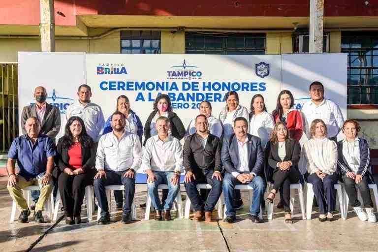 Este día en compañía de Diputados, Síndicos y Regidores, iniciamos la semana con la ceremonia de Honores a la Bandera en la escuela primaria «Ignacio Zaragoza», donde invité a la comunidad educativa a mantenernos unidos por el bien de la educación en #Tampico. Que tengan una excelente semana. #UnidosBrillamosMás