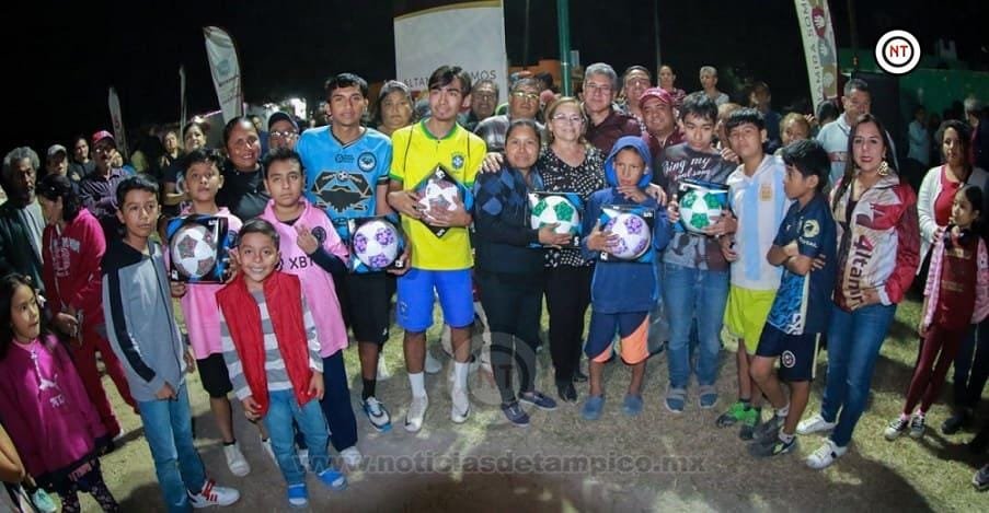 Altamira, Tamaulipas. – El presidente municipal de Altamira, Dr. Armando Martínez Manríquez, encabezó el arranque de iluminación del campo de fútbol localizado en el Fraccionamiento Haciendas Uno. Acompañado de su esposa, la C.P. Rossy Luque de Martínez, presidenta del Sistema DIF, el evento representó un anhelo cristalizado por parte de los vecinos.