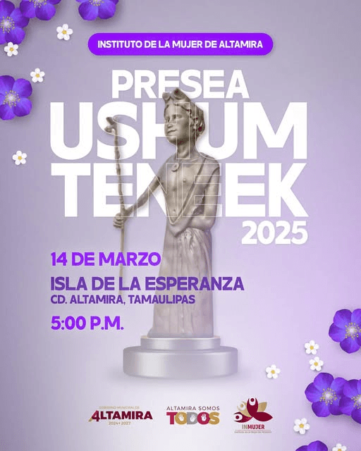 El Instituto de la Mujer de Altamira tiene el honor de invitarte a la ceremonia de entrega de la Presea Ushum Tene’ek 2025, un reconocimiento especial para aquellas personas que inspiran y contribuyen al desarrollo de nuestra comunidad.