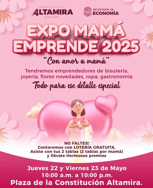 La Secretaría de Economía, a través de la Coordinación de Empleo y Capacitación, te invita a la Expo Mamá Emprende 2025, un espacio pensado para consentir a mamá y apoyar a emprendedores locales.