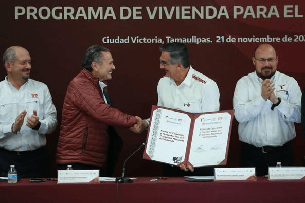 Se llevó a cabo la Firma de Convenio Programa de Vivienda para el Bienestar por parte del gobernador Américo Villarreal, junto a el director nacional del INFONAVIT, Octavio Romero Oropeza y presidentas y presidentes municipales del estado, el convenio de colaboración permitirá la construcción de 43 mil viviendas en 29 municipios del estado y la colocación de 55 mil créditos, con el fin de otorgar todas las facilidades administrativas y beneficios fiscales a nivel estatal y municipal con el objetivo de iniciar los trámites y procesos de obra en el marco del programa de Vivienda para el Bienestar.
