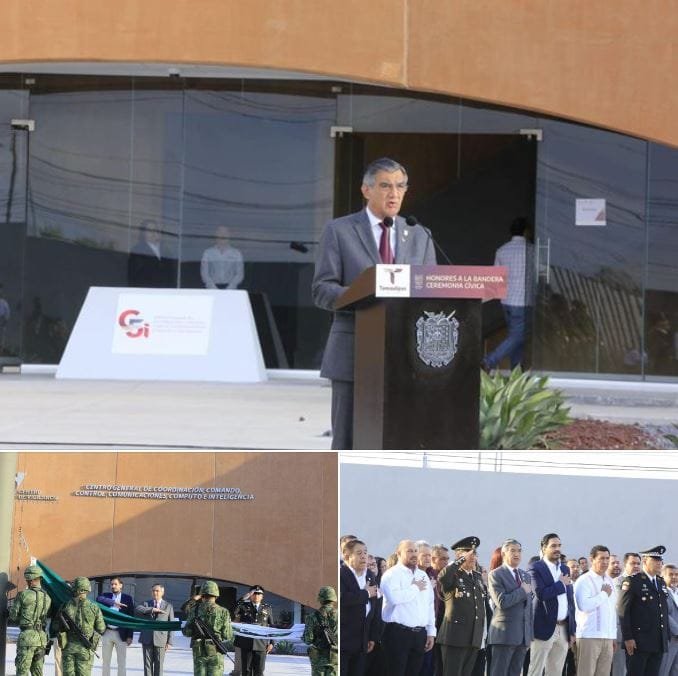 El gobernador Américo Villarreal, rindió honores a los símbolos patrios, este lunes en la ciudad de Reynosa Tamaulipas, en las instalaciones del Centro de Coordinación, Comando, Control, Comunicaciones, Cómputo e Inteligencia (C5). El Gobernador destacó que en la jornada electoral hubo civismo y las y los tamaulipecos reafirmaron su vocación democrática.