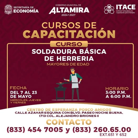 La Secretaría de Economía, a través de la Coordinación de Empleo y Capacitación, te invita a inscribirte en el curso gratuito de Soldadura Básica de Herrería.