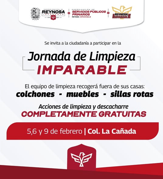 Este viernes 6 de febrero llevaremos acciones de limpieza en la colonia La Cañada, cuidando nuestros espacios públicos y el bienestar de las familias.