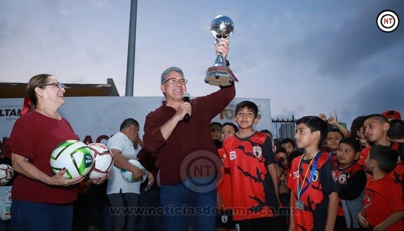 “Vamos a seguir construyendo juntos un mejor Altamira”, concluyó el presidente entregando balones a los equipos de futbol que se dieron cita a este evento.