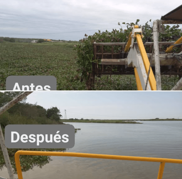 La Subdirección de Cuerpos de Agua Municipales lleva a cabo trabajos de mantenimiento en nuestros cuerpos de agua, específicamente en el Canal Corona de la Laguna del Chairel, con la extracción de maleza acuática.