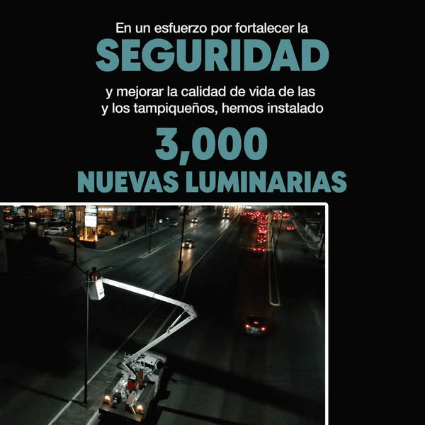 Cada luminaria que instalamos significa tranquilidad para nuestras familias tampiqueñas, la confianza de transitar con seguridad y la certeza de disfrutar de espacios que nos invitan a vivir la ciudad con mayor libertad y bienestar.