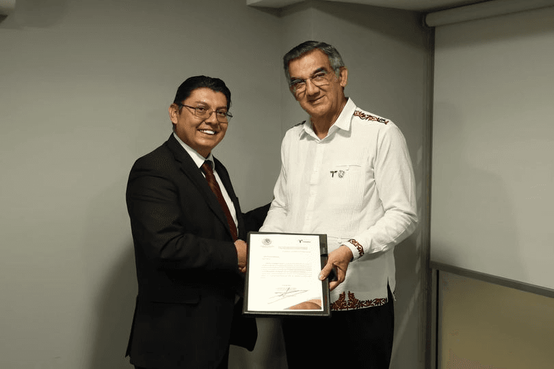 El gobernador Américo Villarreal, entregó este lunes el nombramiento a Marcelo Olán Mendoza, como nuevo jefe de la Oficina Fiscal de Reynosa.