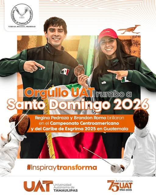Regina Pedraza y Brandon Romo brillaron en el Campeonato Centroamericano y del Caribe de Esgrima 2025, celebrado en Guatemala, dejando en alto el nombre de la UAT con su talento, disciplina y pasión.