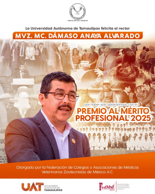 Felicitamos a nuestro rector, Dámaso Anaya Alvarado, por recibir el Premio al Mérito Profesional 2025, otorgado por la Fedmvz – Federación de Colegios y Asociaciones de Médicos Veterinarios Zootecnistas de México A.C.