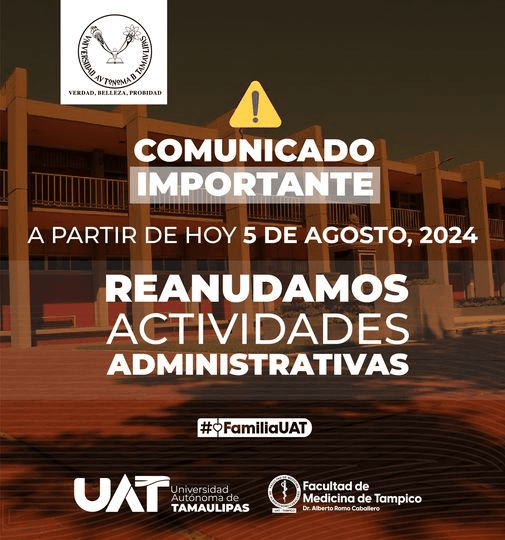Atención a la comunidad FMT se reaundarán las actividades administrativas el día 5 de agosto