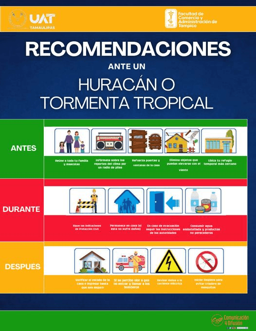Algunas sugerenicas y recomendaciones ante la tormenta tropical que impactará en la zona conurbada de Tampico, Madero y Altamira para nuestros estudiantes y comunidad de la UAT.