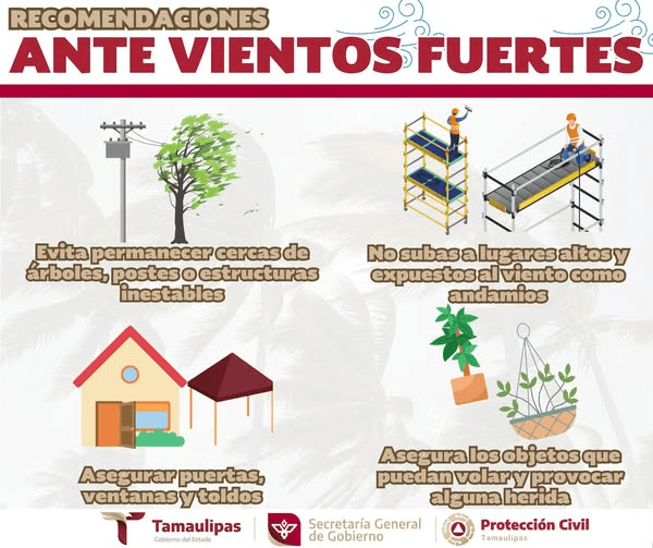 Ante la presencia de vientos intensos, Protección Civil te exhorta a tomar precauciones: