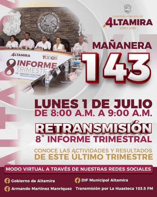 Recuerda que este lunes en punto de las 8:00 AM tenemos una cita con las actividades y resultados de la semana, acompáñanos en la edición143 de la #Mañanera🌅