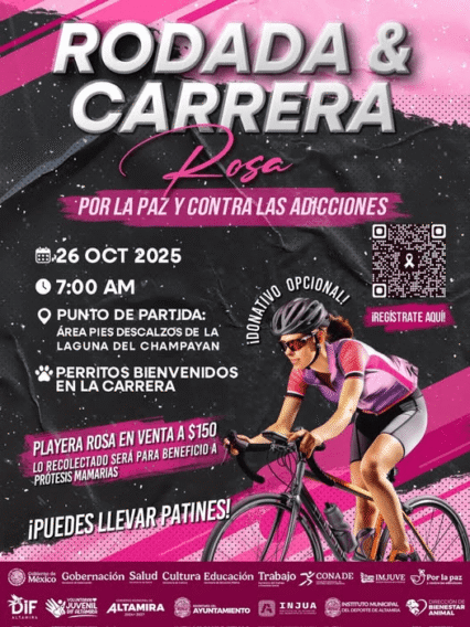 Este 26 de octubre únete con causa en el área de Pies Descalzos de la Laguna del Champayán para rodar, correr o patinar por la vida. 🚴♀️🏃♀️✨