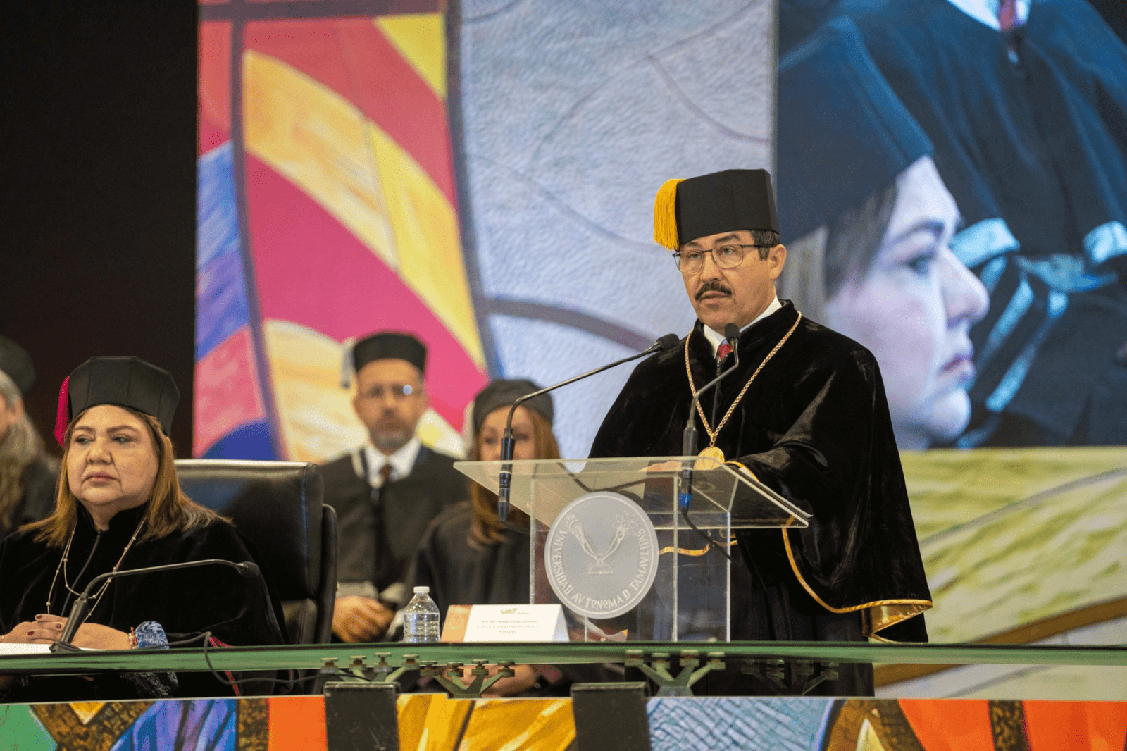 Durante la Asamblea Solemne en el Gimnasio Multidisciplinario Victoria, el rector Dámaso Anaya Alvarado resaltó la importancia de reconocer el esfuerzo y talento de la comunidad universitaria.