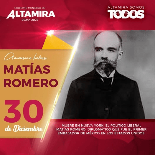 En 1898, falleció en Nueva York el político liberal y destacado diplomático Matías Romero, quien fue el primer embajador de México en los Estados Unidos.