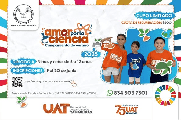 ¡Este verano, enciende la chispa de la ciencia en los más pequeños! Llega el Campamento de Verano “Amor por la Ciencia” UAT 2025, una experiencia única donde niñas y niños explorarán el mundo de la ciencia a través de experimentos, juegos y actividades educativas, acompañados por nuestras investigadoras e investigadores.