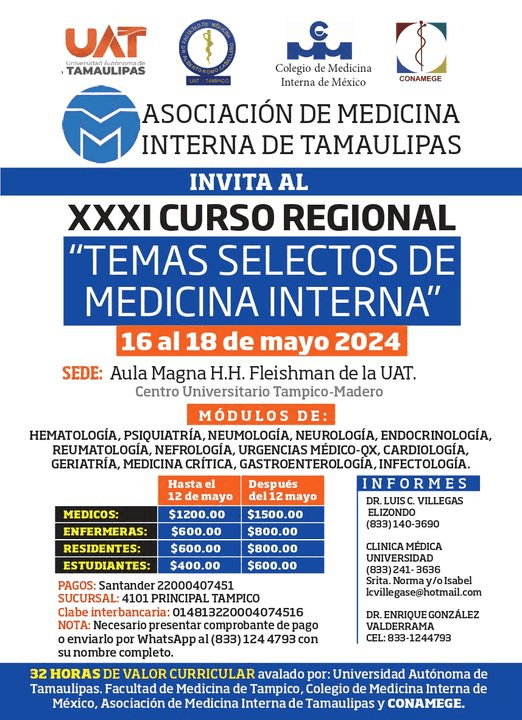 ¡No pierdas esta oportunidad de aprender de los expertos en Medicina Interna! ![]()